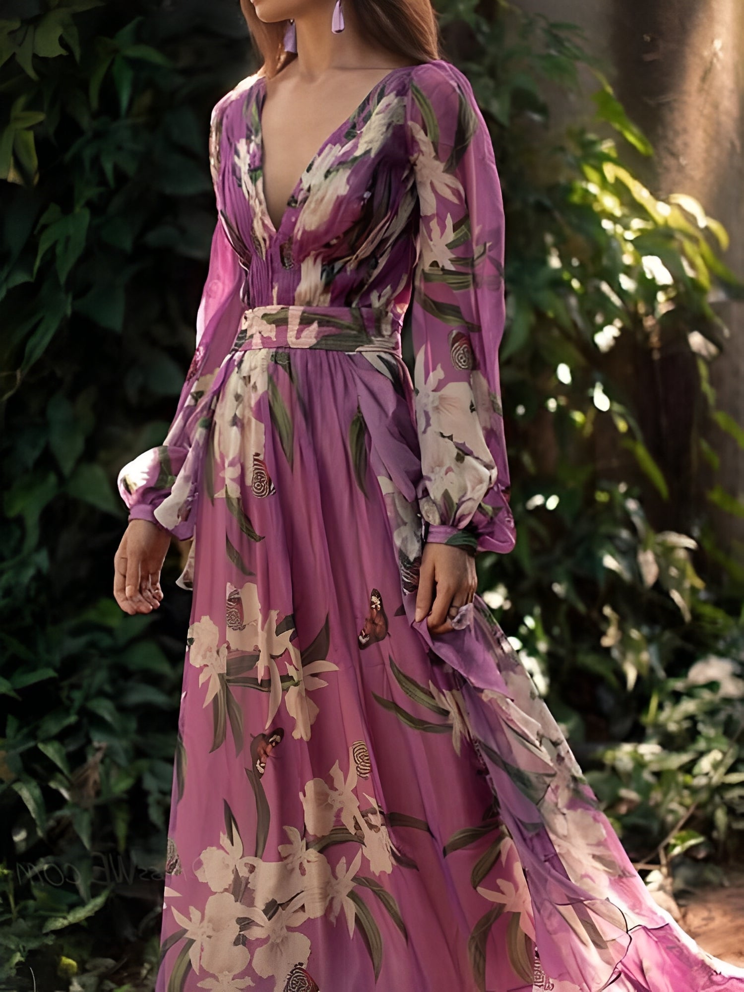 Josceline è l’abito ideale per le occasioni speciali. Realizzato in chiffon leggero con stampa floreale, segue con grazia ogni movimento. Il profondo scollo a V, le maniche lunghe e la vestibilità morbida lo rendono comodo e raffinato. Perfetto per matrimoni, eventi estivi o feste in giardino, Josceline unisce eleganza e leggerezza in un capo che non passa inosservato. I colori delicati aggiungono un tocco romantico.